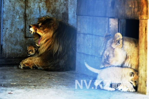 Их первые совместные детеныши появились на свет всего месяц назад. Зоологи еще не выяснили, сколько  их. До сегодняшнего дня они считали, что малыш всего один. Но когда фотокор nv.kz приехал его фотографировать, из домика выбежало сразу два звереныша. Возможно, их там и больше. Работники зоопарка стараются не беспокоить семейство.